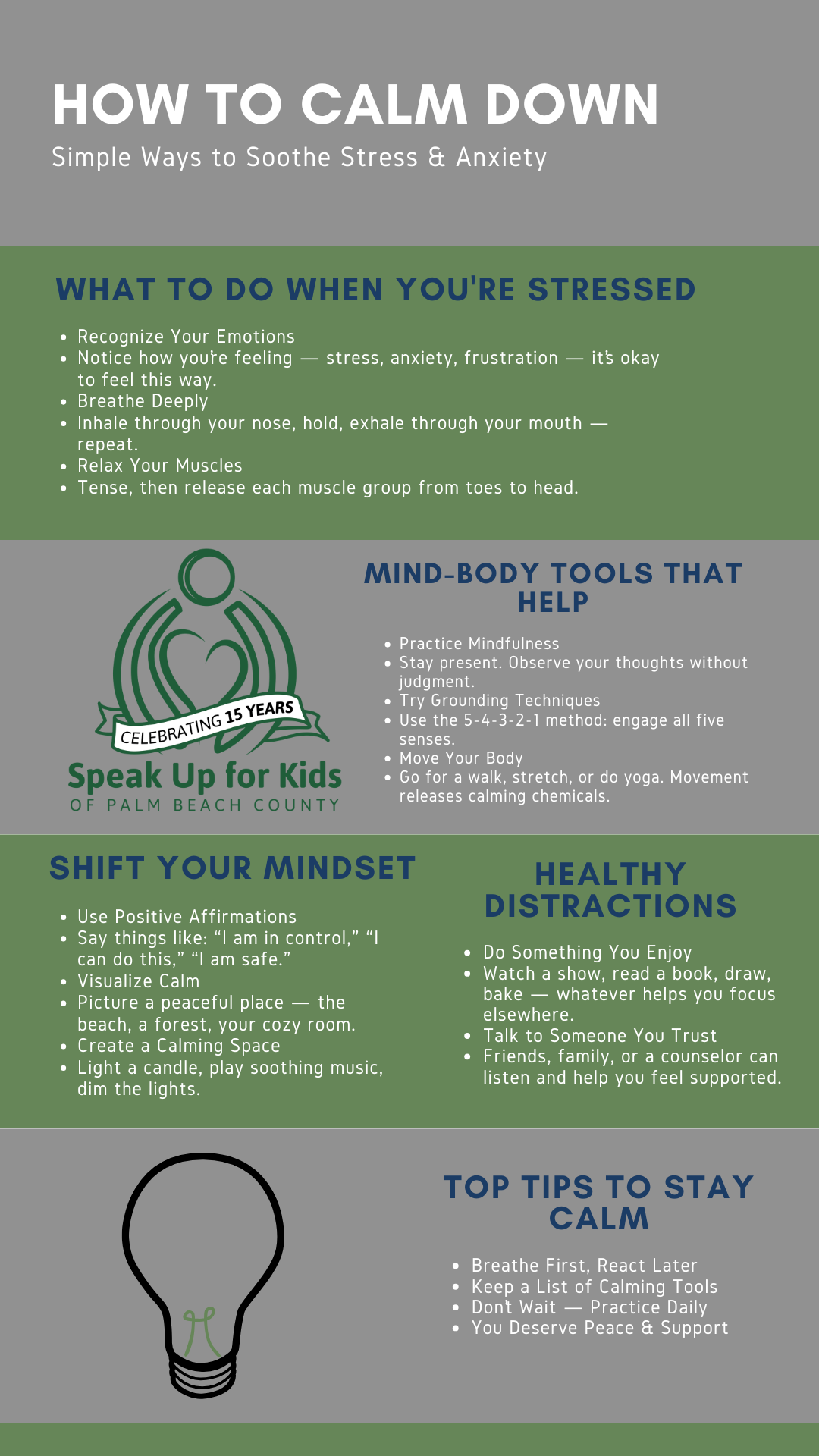 Managing stress is an ongoing process, and the more consistently you practice these techniques, the more natural they will become. By staying aware of your emotions, using calming strategies, and taking care of your overall well-being, you can create a strong foundation for handling life’s challenges. Remember—every small step you take toward calmness strengthens your resilience.