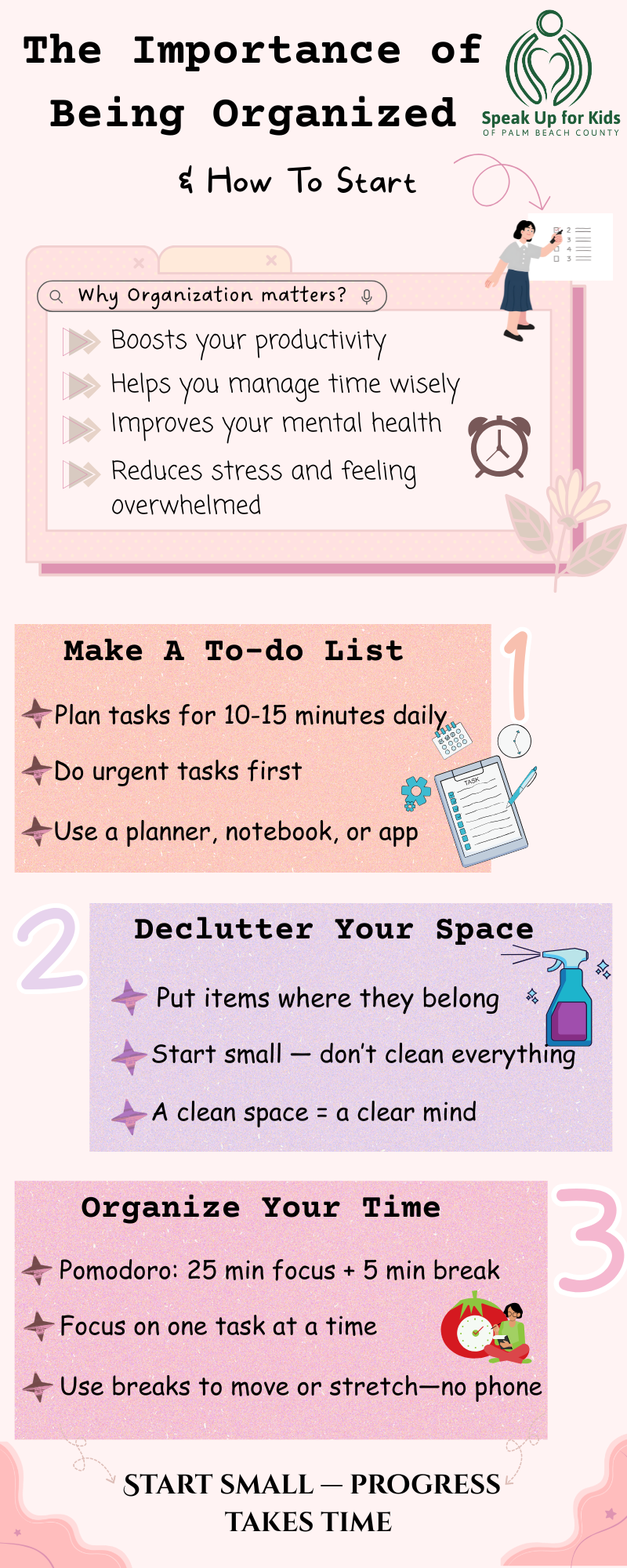For many of us, studying is very important—we need it for high school, college, future jobs, and basically life. But have you ever thought about being organized as just as important as studying? Being organized means having a plan ahead to manage your life and time–it doesn’t mean sitting for hours just to procrastinate about how to spend your day. It’s not easy to stay organized 24/7. Believe it or not, nothing works perfectly on the first day. If you want to start becoming organized, don’t overwhelm yourself. Organization exists to help you feel like you have control over your life—even if you’ve never felt that way before.
